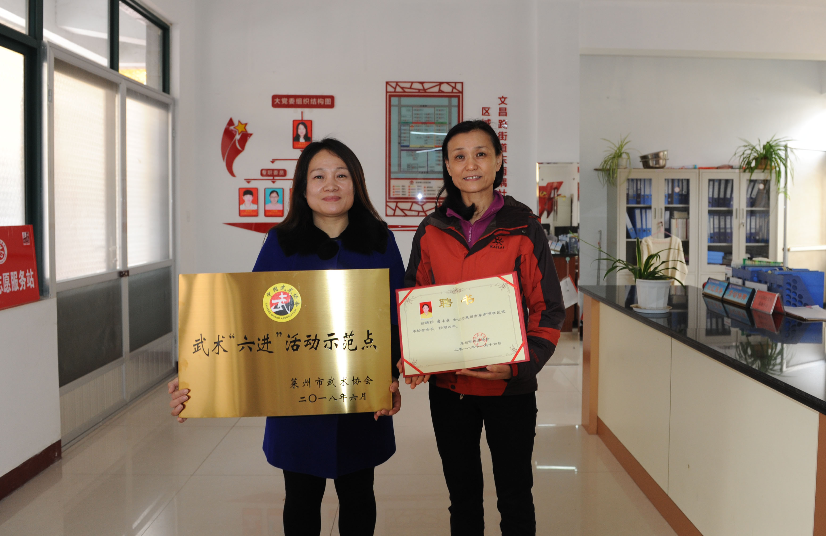国家体育总局武术管理中心提出武术要“六进”,即进学校、进机关、进企业、进社区、进乡镇、进军营。贯彻国家武术发展方针,做好武术的宣传和普及工作,为广大武术爱好者服好务,是基层武术协会和武术工作者的义务。莱州武协正逐步建立各级示范点,推动武术“六进”深入开展。以下是部分示范点展示: